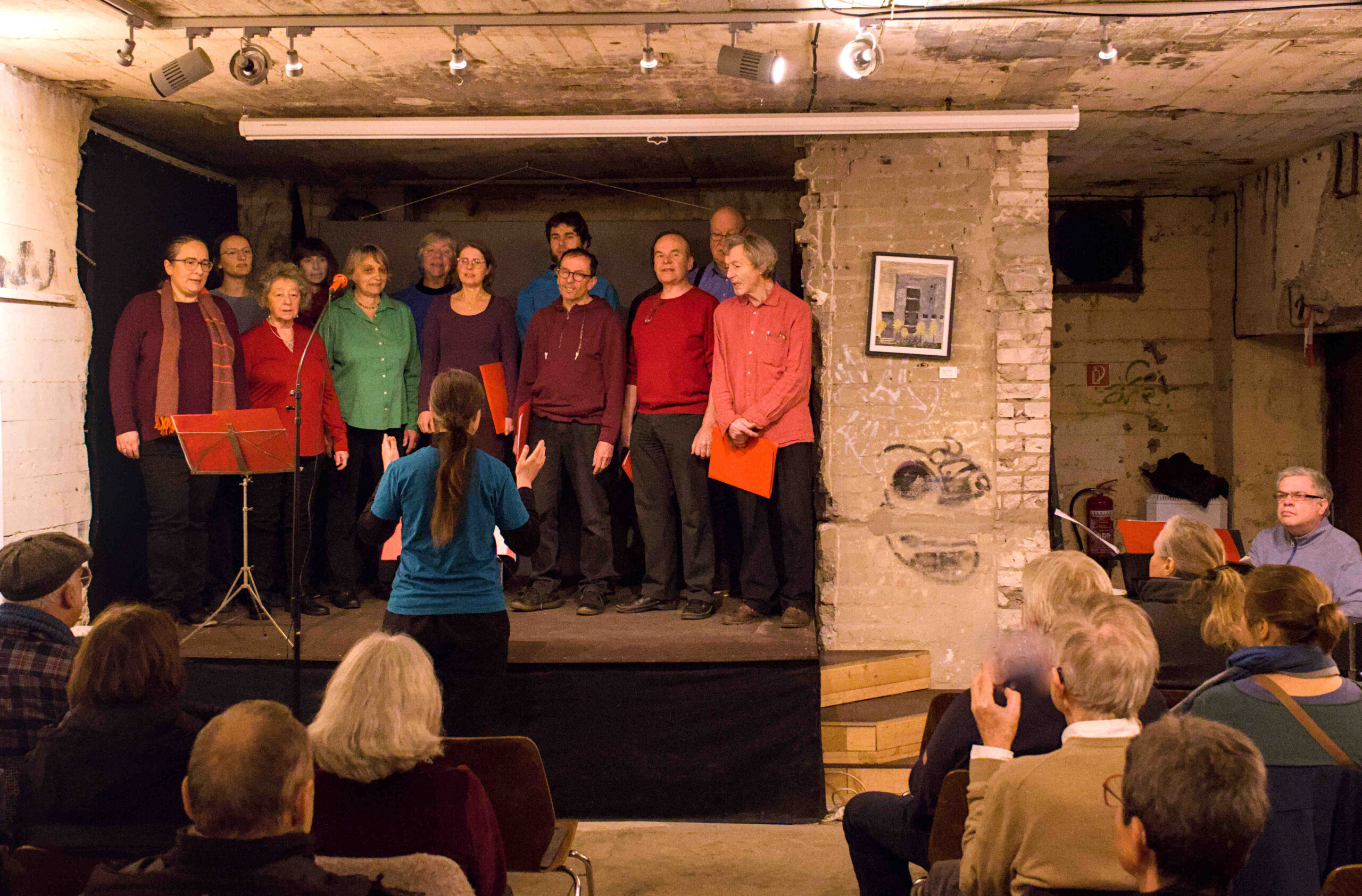 Im Moment haben wir ein Chormitglied, das die musikalische Arbeit anleitet, d.h. Einsingen, Einstudieren der Lieder und Liedinterpretation, und dabei von einem Pianisten unterstützt wird.